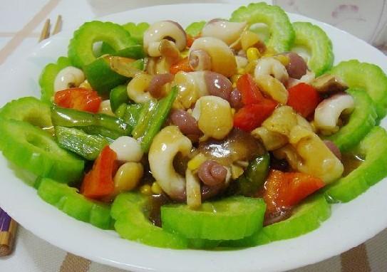 主料:香菇8朵,苦瓜1根,胡萝卜l//2根。