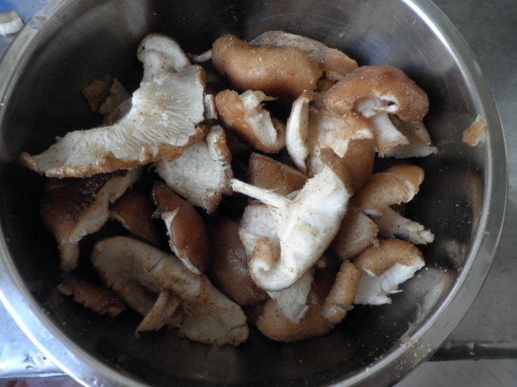 材料:鲜香菇,盐,五香粉,白胡椒粉,植物油。
