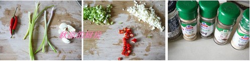 调味料:孜然粒、姜粉、黑胡椒碎、椒盐、大蒜粉各适量。