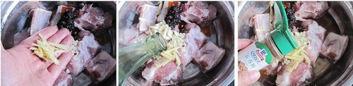 1.排骨冲洗干净后加入三大勺豆豉油辣椒酱;