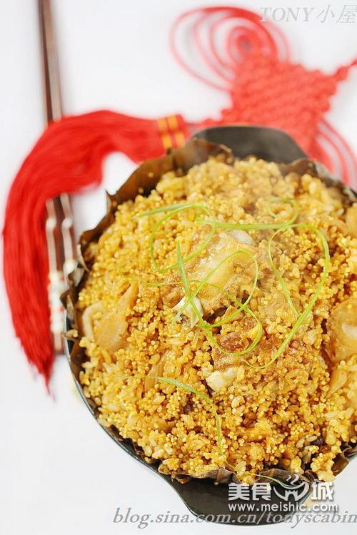原料:排骨 糯米 小米 荷叶