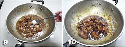 6、过早放盐肉质容易变老,所以在最后快要收汁的时侯才放更好。