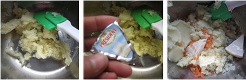 原料:土豆一个、小三角奶酪二块、胡萝卜少许。