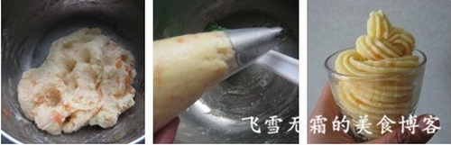 7、然后再加入少许切细粒的胡萝卜,混合均匀。