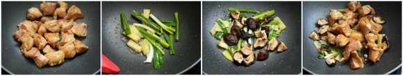 4.葱姜煸出香味后,加入香菇块拌炒出香菇香味。