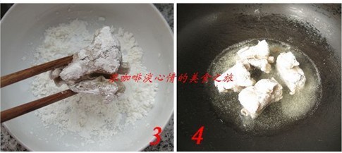 3.将煮好的排骨沾上干淀粉。