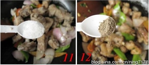 11-12.最后加入盐、鸡精、黑胡椒粉调味即可。