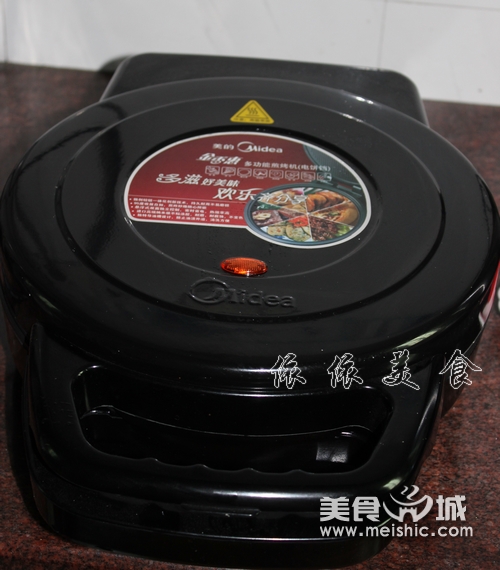 3、盖上电饼铛盖子(这个时候可以去洗脸刷牙了)