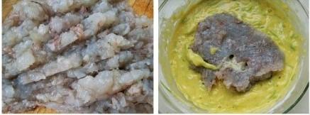 4、把虾泥倒入上面面糊中,搅拌均匀。