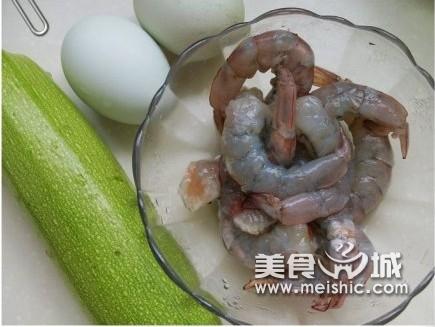 原料:西葫芦、虾仁、鸡蛋、面粉、青红黄彩椒、盐、胡椒粉