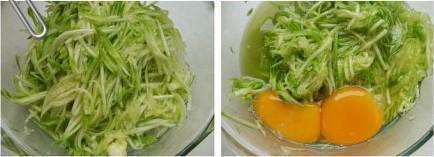 1、西葫芦洗净,擦丝,用盐腌一下,杀出水分。