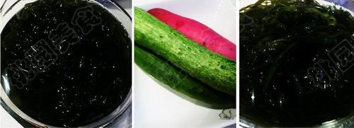 材料:既食海带丝、黄瓜、小红罗卜(也叫水罗卜)