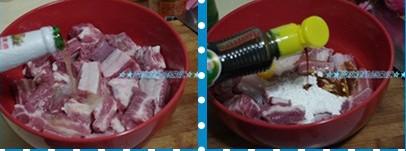 1,排骨切成麻将块,洗干净,用1/3灌啤酒泡30分钟,