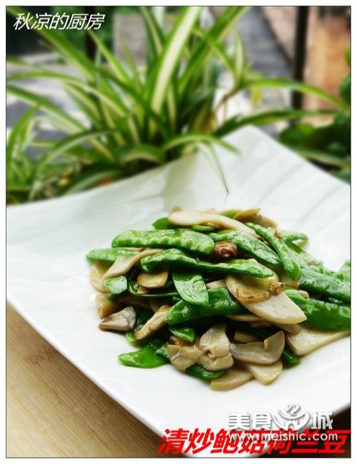 3.最后一步不要煸炒过久,因为荷兰豆焯过水,鲍菇也煸过,所以只要略翻炒加盐炒匀即可。