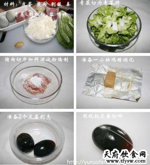 皮蛋瘦肉粥原料:瘦肉、松花蛋、大米、水、盐与鸡精若干