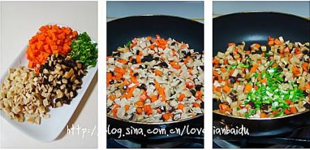 2、糯米和蔬菜丁的实际用量很少,可以留做粽子或烧麦。