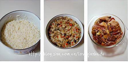 糯米、香菇、红萝卜、鲜笋、香葱、鸡腿、料酒、生抽、盐、鸡精、胡椒。