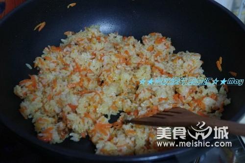 1,胡萝卜切丝,用一点油先煸炒下,炒到没有水分