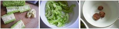 2、用适量细盐将苦瓜拌匀,待苦汁液渗出后,将苦瓜片用凉水冲洗,再沥干水份;