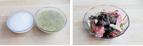 5、糯米碎与黑小米、小米放入排骨中拌匀