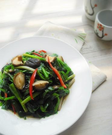 原料:干冬菇仔,红椒,韭菜,油,蒜末,盐、生抽