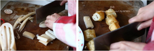 怀念小时候油条的味道呀。。。松松脆脆的,咬到嘴里,嘎吱嘎吱响。现在的油条不知什么原因,软软的,反正不酥脆,如果时间放的久了,就更不好吃了。偶尔,我还是会去大润发超市买几根油条来,抚慰一下自己的胃。不留同学最喜欢喝“油条酱油汤”,就是把已经软掉了的油条扯成小段,拿开水一冲,只放点酱油,撒点葱花,其他什么调料都不放,要的就是从前的那个味道。看他喝的津津有味的样子,我们家开开小盆友表示灰常不理解。