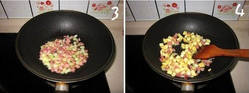 3.倒入洋葱和培根丁;