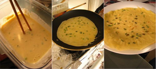 3不粘锅内放少许油,烧热,倒入面糊,转开