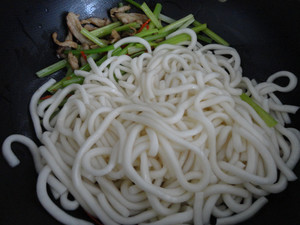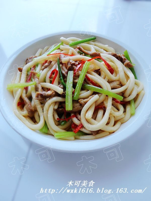 原料:土豆粉、肉丝、芹菜丝、红椒丝、盐、料酒、老抽、植物油、生抽、辣椒油、鸡精。
