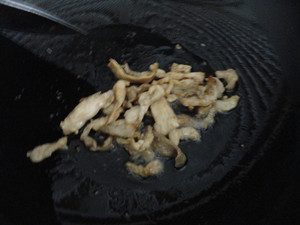 1、肉丝加料酒、老抽、盐腌一会。