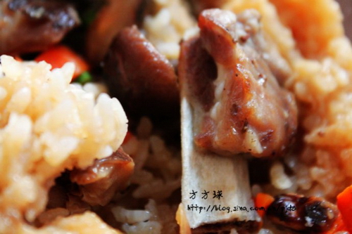 把米饭拌匀,好香的排骨蒸饭,花菇,胡萝卜也很好吃,米好,肉好,相得益彰了!