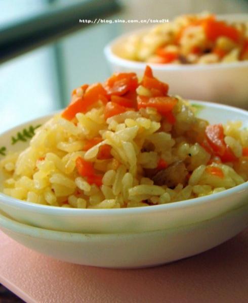 一年四季都能买到的胡萝卜中就含有大量的天然胡萝卜素,而胡萝卜中的β胡萝卜素属于脂溶性维生素,需要用油炒,才更有利吸收。所以在烹调的时候一点要用到油并且最好把胡萝卜煮到比较熟的地步。这样的做法在我们家比较常见,特别虫爸在家的时候,几乎不会端白米饭上桌的,什么青菜饭、扁豆饭、土豆饭、紫薯饭都是我们家常见的吃法,饭菜合一不但省事不少也可以让家人尽量的多吃到一种蔬菜,尤其对于宝宝来说,色彩艳丽的米饭比较会引起他的食欲哦。