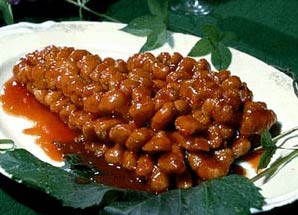 (4)锅中留下余油,下蒜粒煸出香味,把小碗里的调料下锅煮滚时倒进过油肋排骨一齐翻炒几下,起锅装在盘中,面上铺樱桃片即成。