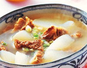排骨汤原料:猪小排骨150克,黄豆芽、嫩豆腐各100克,色拉油15克,葱段、精盐、姜片、味精、胡椒粉各适量。