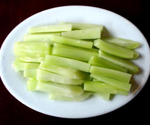 提示:莴笋要用盐腌渍,既可使莴笋脆嫩,又可除去涩味。