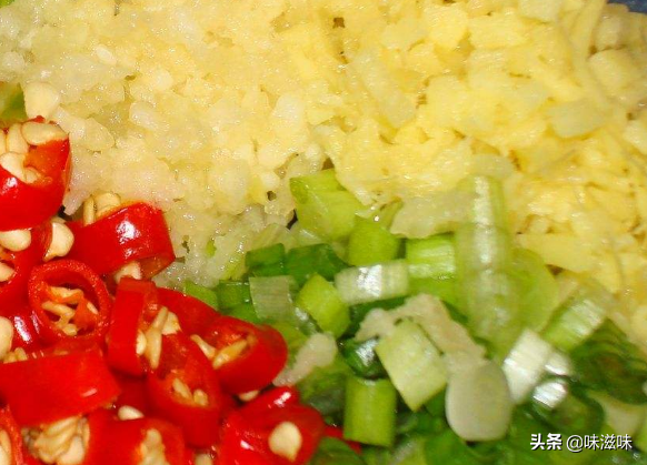 准备适量的葱姜蒜辣椒切成末备用;
