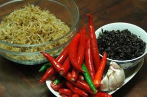 豆豉青椒原料:青辣椒400克,红辣椒40克,黑豆豉100克,色拉油50克,精
